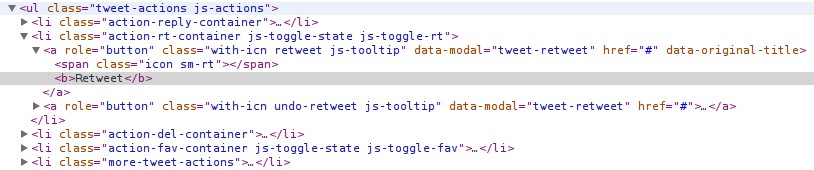 one for each of Reply, Retweet, Favorite and More. Inside every of them they have a <a>