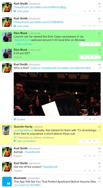 Just look at that! Mashable and some person who needed every single one of his followers to know “Aarrrgh” look normal, Elon’s tweets are hard to miss green, and someone who doesn’t tweet relatively as often is highlighted a bit as yellow.