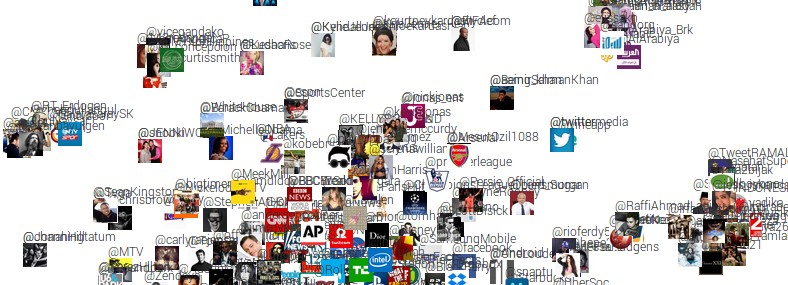 First, take a look at the final demo. To create this demo I found the top 500 most followed accounts on Twitter, downloaded 200 of their tweets and then measured differences in what they tweet about. These differences are then fed to t-SNE to produce a 2-dimensional visualization, where nearby people tweet similar things. Fun!