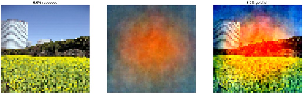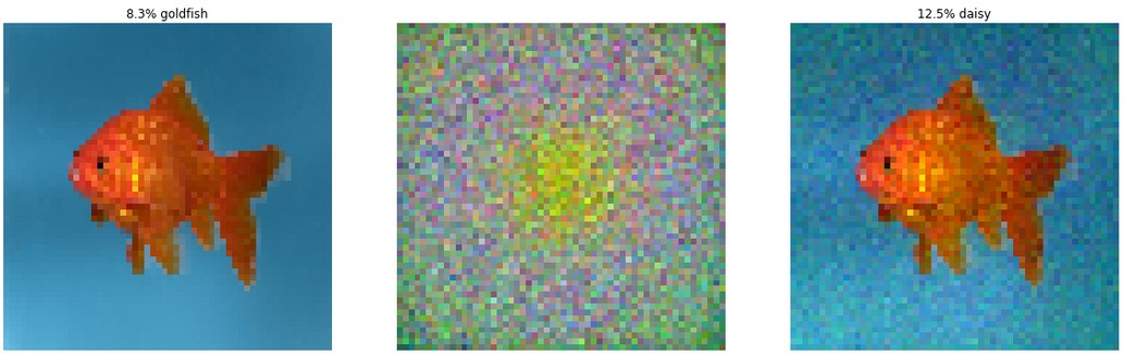 Of course, these examples are not as impactful as the ones that use a ConvNet because the ConvNet gives state of the art performance while a linear classifier barely gets to 3% accuracy, but it illustrates the point that even with a simple, shallow function it is still possible to play around with the input in imperceptible ways and get almost arbitrary results.