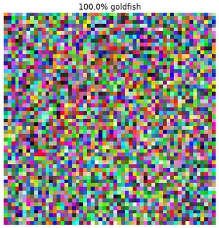 Now that we’ve trained the model parameters we can start to produce fooling images. This turns out to be quite trivial in the case of linear classifiers and no backpropagation is required. This is because when your score function is a dot product \(s = w^Tx\), then the gradient on the image \(x\) is simply \(\nabla_x s = w\). That is, we take an image we would like to start out with, and then if we wanted to fool the model into thinking that it is some other class (e.g. goldfish), we have to take the weights corresponding to the desired class, and add some fraction of those weights to the image: